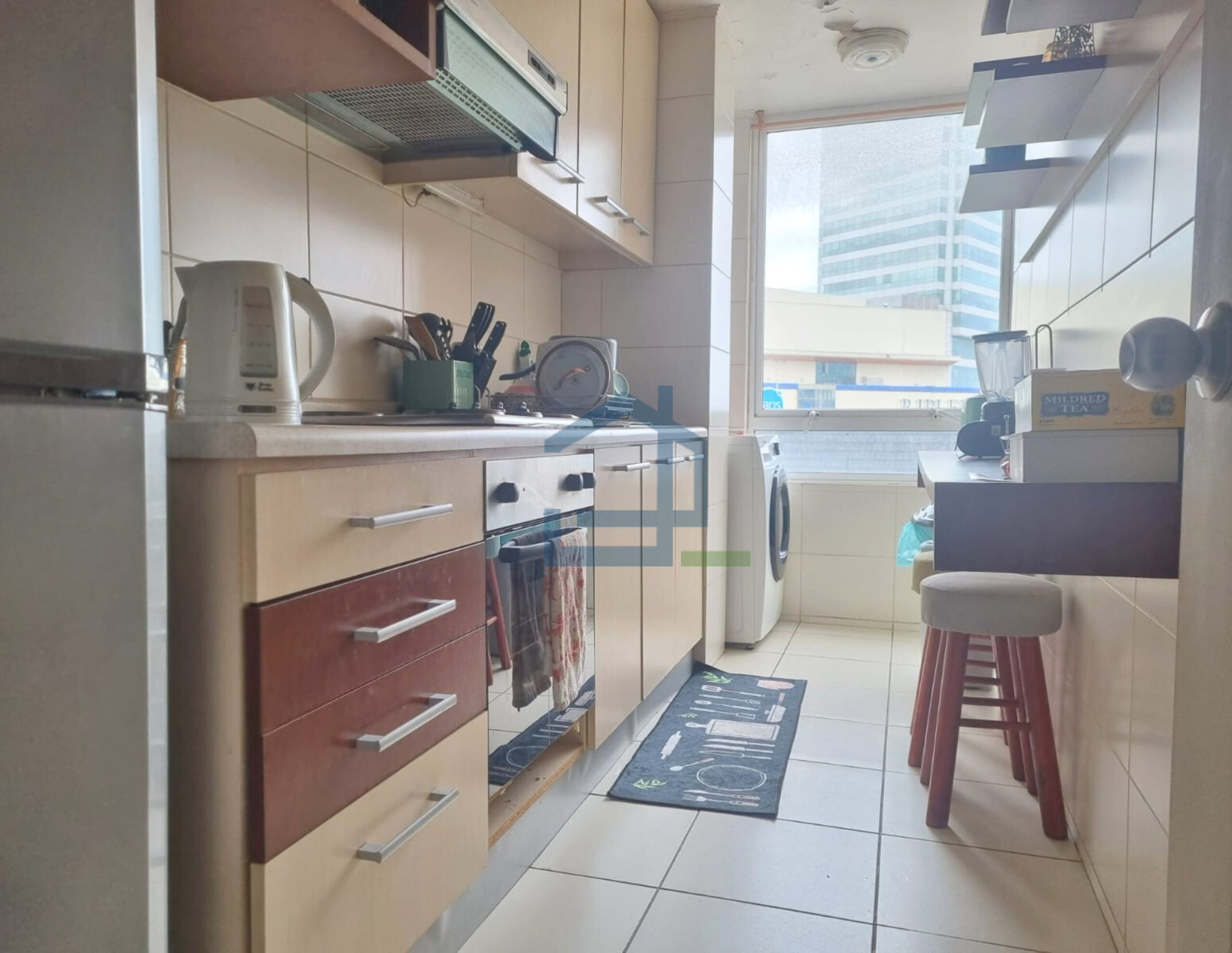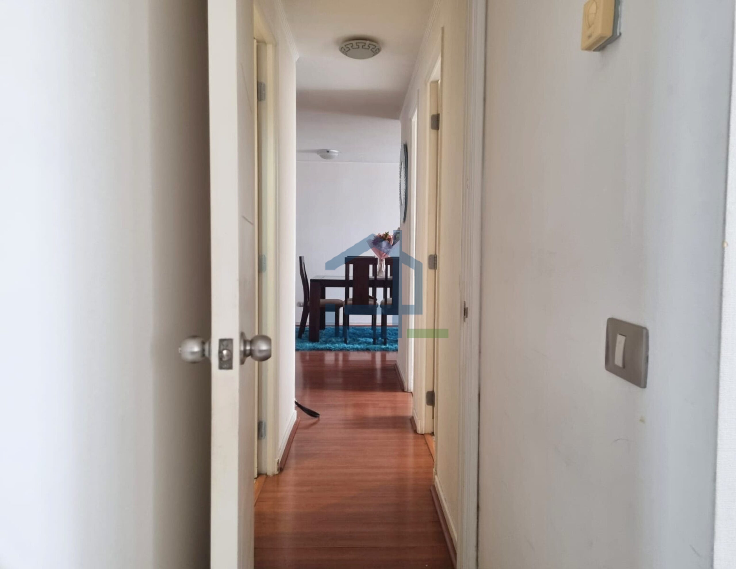 Esta emplazado en quinto piso y contempla living-comedor, cocina con espacio para lavadora, dos dormitorios y dos baños. Pavimentos en piso flotante, alfombra y cerámica.